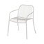 Hlavním prvkem, který dodává židli na originalitě, je jemný detail, kdy jsou konce plochých lamel sedáku a opěradla elegantně prohnuté kolem trubkové konstrukce rámu. Židle je vyrobena z odolné oceli, která je pozinkovaná a opatřená práškovým lakem s vysoce kvalitní povrchovou úpravou, vhodnou pro venkovní použití. Díky tomu je velmi odolná vůči povětrnostním vlivům.