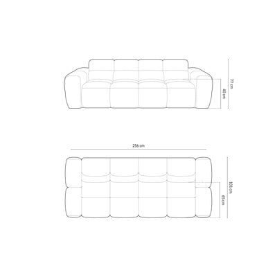 Šedá, trojmístná, šířka 256 cm, hloubka 101 cm, hloubka sedáku 58 cm