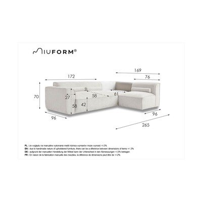 Pravý roh/do LTmavě šedáČtyřmístnáŠířka 265 cmHloubka 169 cmHloubka sedáku 58 cm