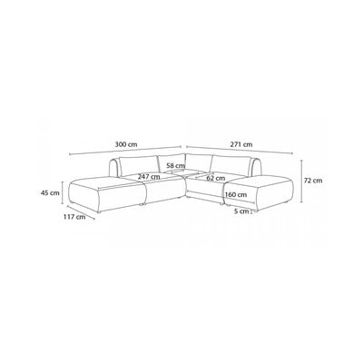 Žinylková, pravý roh/levý roh/variabilní roh/do L, šedá, čtyřmístná, šířka 271 cm