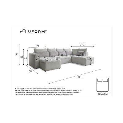 Homely Tommy je pohovka od značky Miuform, která zaujme zejména dvojitými polštáři. Ty dokážou v mžiku změnit hloubku sedu - z 57 na 73 cm, pro pohodlné posezení osob s různou výškou.