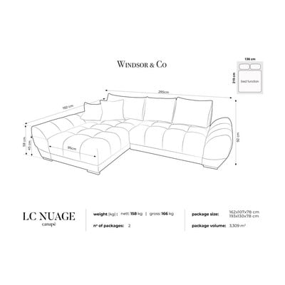 SametováRozkládací/s úložným prostoremLevý roh/s lenoškouŠedáVoděodolná/odolné vůči skvrnámČtyřmístnáŠířka 285 cm