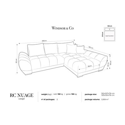 SametováRozkládací/s úložným prostoremPravý roh/s lenoškouŠedáVoděodolná/odolné vůči skvrnámČtyřmístnáŠířka 285 cm