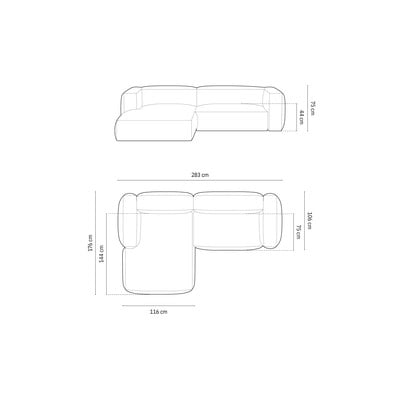 Modulární rohová pohovka MartinaSametová, levý roh/s lenoškou, vhodné pro mazlíčky, šedá, čtyřmístná, šířka 280 cm