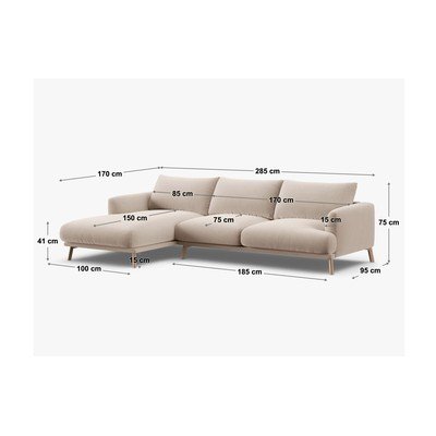Béžová sametová rohová pohovka (levý roh/s lenoškou) Naomi – Micadoni