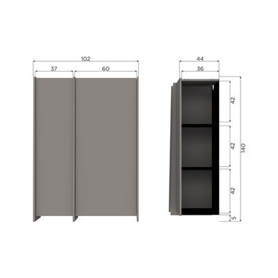 V dekoru jasanuZ překližkyPovrchová úprava: dýhaŠedáŠířka 102 cmVýška 140 cmHloubka 44 cm