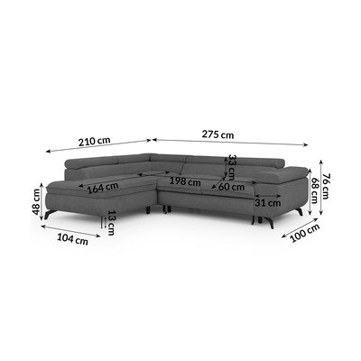 ŽinylkováPolohovací/rozkládací/s úložným prostoremLevý roh/do LŠedáVhodné pro mazlíčky/odolné vůči skvrnámČtyřmístnáŠířka 275 cm