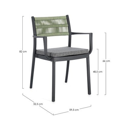 Zahradní židle Alvin od značky Bizzotto v sobě spojuje moderní design a komfort. Židle je vyrobena z odolného plastu v elegantní šedé barvě, která se snadno kombinuje s ostatním zahradním nábytkem. Pro maximální pohodlí je vybavena opěrkami a odnímatelným polštářem v šedé barvě.
