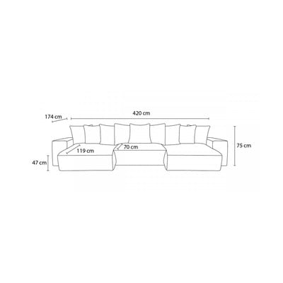 Manšestrová, do "U", taupe, vícemístná, šířka 420 cm