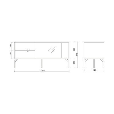 TV stolek Met Mini od značky noo.ma. Elegantní design s posuvnými dvířky efektivně ukryje kabely a uspořádá vaše multimediální zařízení.
