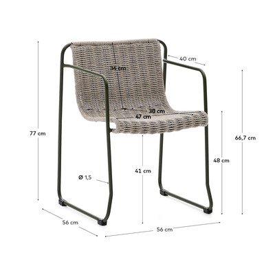 Židle Maurina od značky Kave Home se pyšní designem vytvořeným studiem Yonoh exkluzivně pro Kave Home. Sedák a opěradlo jsou vyrobeny z ručně tkané šňůry, která je odolná vůči UV záření, což zajišťuje její dlouhou životnost i při častém používání venku.