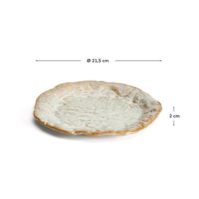 Dezertní keramický talíř Alenia od značky Kave Home. Organické, nepravidelné tvary a jedinečné odstíny zaručují, že žádné dva kusy nejsou stejné.