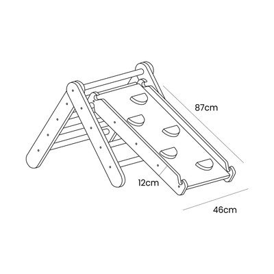 Set je vyroben z masivního dřeva a odpovídá Montessori pedagogickému přístupu. Celá konstrukce je stabilní, lehká a bezpečná. Přes trojúhelníkový žebřík lze přehodit deku a vytvořit tak útulný týpí stan, který děti milují. Dřevo je ošetřeno ekologickou barvou, která pomáhá zachovat jeho vzhled.