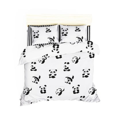 Set přehozu a povlaku na polštář PandaNa dvoulůžko, bavlněný, bílý/černý, 200x235 cm