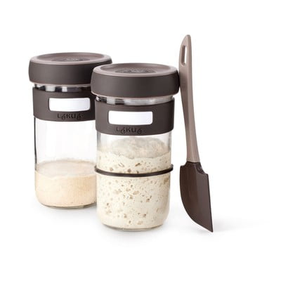 Tento set od značky Lékué obsahuje vše potřebné pro přípravu domácího kvásku. Součástí balení jsou dvě sklenice, každá o objemu 700 ml, a stěrka.
