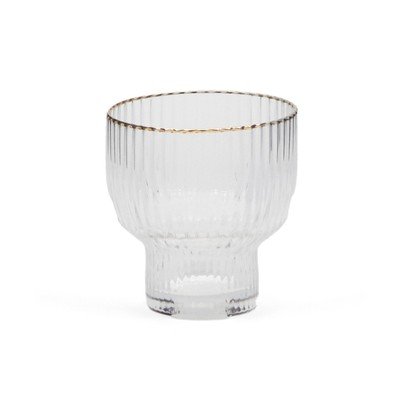 Sklenice Ayan od značky Kave Home. Elegantní design se zlatým okrajem a svislými fasetovanými liniemi je ideální pro povýšení každé večeře na slavnostní událost.