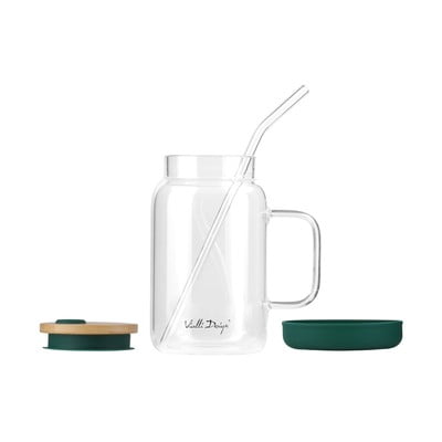 Součástí je také elegantní skleněné brčko – doporučujeme s ním zacházet opatrně kvůli jeho křehkosti. Sklenice je vyrobena z odolného borosilikátového skla a díky plastové základně dobře drží stabilitu.