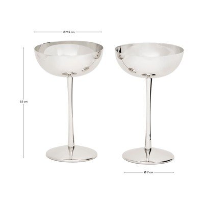 Sada dvou skleniček na víno Nirela od značky Kave Home. Vyrobeny jsou z nerezové oceli, která zaručuje vysokou odolnost a snadnou údržbu po každém použití.