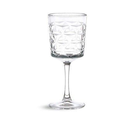 Sklenice na víno od značky Hermia zaujme svým moderním vzhledem. Je vyrobena z čirého skla a její povrch zdobí výrazný fasetovaný vzor, který vytváří zajímavou hru světla a dodává sklenicím geometrický vzhled.