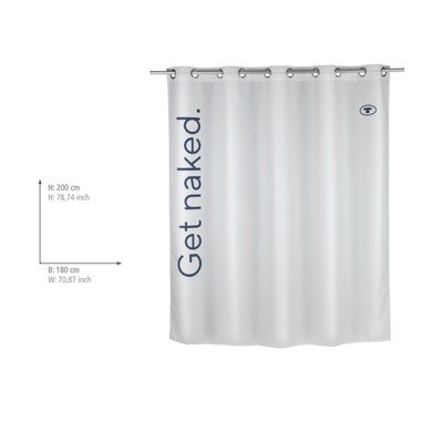 Sprchový závěs Tom Tailor Get NakedS nápisem, bílý, 180x200 cm