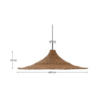 Je vyrobeno z ratanu a jeho unikátní tvar, připomínající široký klobouk, je výsledkem pečlivého ručního tkaní.