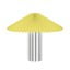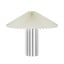 Spodní část lampy tvoří válcovitá základna s výrazným vertikálním žebrováním, které jí dodává elegantní a strukturovaný vzhled. Celkový tvar lampy připomíná hřib, což z ní dělá zajímavý solitérní prvek na nočním stolku, komodě nebo pracovním stole.