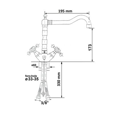Tato mosazná stojánková baterie s kohoutkovým ovládáním zaujme svým retro provedením. Disponuje otočným ramínkem a připojením typu 3/8". V balení kromě ní naleznete také přívodní flexibilní hadice, uzavíratelnou výpusť a označení teplé a studené vody v českém a anglickém jazyce.