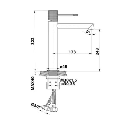 Umyvadlová, mosazná, stojánková, v leskle stříbrné barvě