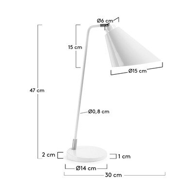 S kovovým stínidlem, kovová, do zásuvky, bílá, výška 47 cm
