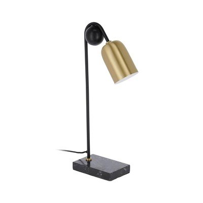 Tato stolní lampa kombinuje tři oblíbené materiály - mosazné stínidlo, mramorový podstavec a masivní dřevo v případě dekorativní koule.