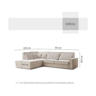 Rohová pohovka Kirou od značky Maison de Rêve. Provedení s lenoškou je ideální pro pohodlné lenošení a odpočinek.