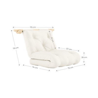 Křeslo je vybaveno čtyřmi nástěnnými držáky, které ho bezpečně drží na místě a zároveň umožňují, aby fungovalo jako dekorativní prvek v místnosti. Pro sezení jednoduše přesuňte křeslo do nižší polohy. Potřebujete-li místo na spaní, stačí rozložit matraci na podlahu. Držáky lze instalovat v různých místnostech, což umožňuje přesouvat křeslo podle potřeby. Konstrukční tyč je široká 115 cm.