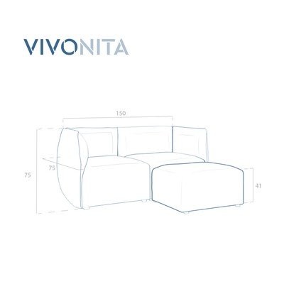 Modul pohovkySametový, světle modrý, hloubka 75 cm