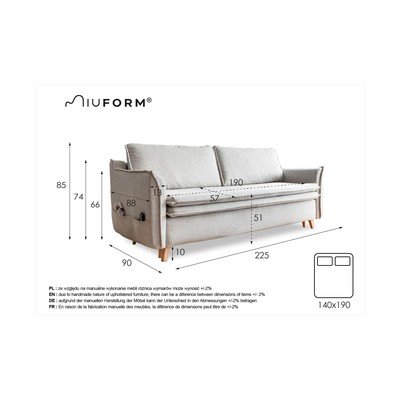 Upozornění: Rozložená pohovka nenahrazuje plnohodnotné lůžko, ale slouží pouze k příležitostnému přespání.
