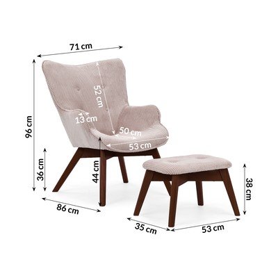 Světle růžové manšestrové křeslo s podnožkou Niko – Ropez