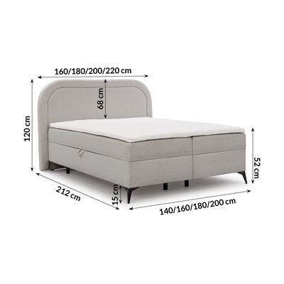 160x200 cm, s úložným prostorem, čalouněná, s matrací/s topperem, z textilie bouclé, světle šedá
