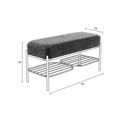 Kovová/polstrovanáSvětle šedáŠířka 90 cmHloubka 35 cmVýška 45 cm