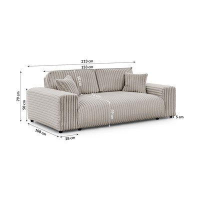 Manšestrová, voděodolná/odolné vůči skvrnám, světle šedá, trojmístná, šířka 213 cm