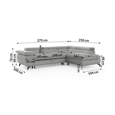 ManšestrováPolohovací/rozkládací/s úložným prostoremPravý roh/do LSvětle šedáVhodné pro mazlíčky/odolné vůči skvrnámČtyřmístnáŠířka 275 cm