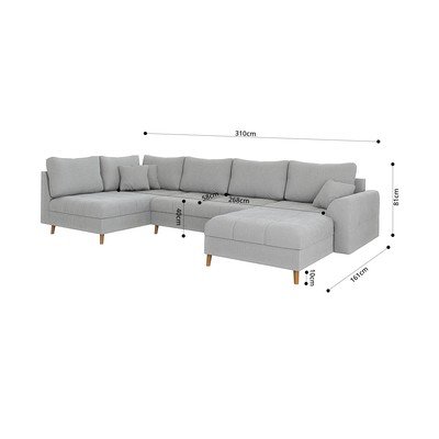 Manšestrová, pravý roh/do "U", šedá, vícemístná, šířka 310 cm