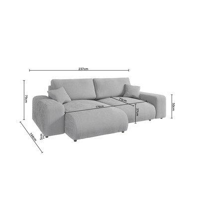 Manšestrová, pravý roh/levý roh/variabilní roh/s lenoškou, světle šedá, trojmístná, šířka 237 cm