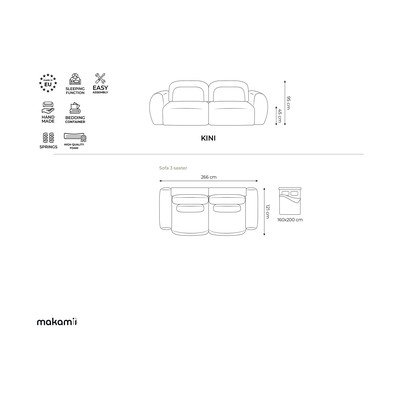 Pohovka Kini od značky Makamii. Je rozkládací a navíc nabízí praktický úložný prostor.