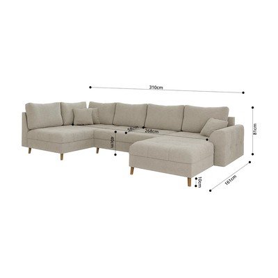 Levý roh/do "U", šedá, vícemístná, šířka 310 cm