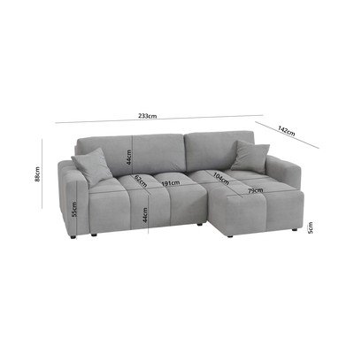 Rozkládací/s úložným prostorem, pravý roh/levý roh/variabilní roh/s lenoškou, světle šedá, trojmístná, šířka 233 cm
