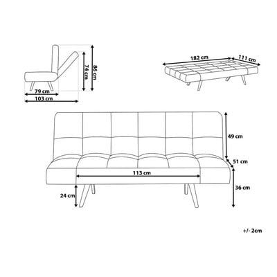 Upozornění: Rozložená pohovka nenahrazuje plnohodnotné lůžko, ale slouží pouze k příležitostnému přespání.