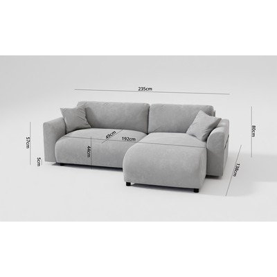 Sametová, rozkládací/s úložným prostorem, pravý roh/levý roh/variabilní roh/s lenoškou, šedá, trojmístná, šířka 235 cm