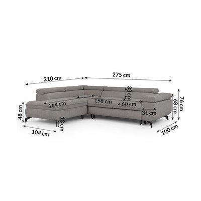 ŽinylkováPolohovací/rozkládací/s úložným prostoremLevý roh/do LSvětle šedáVhodné pro mazlíčky/odolné vůči skvrnámČtyřmístnáŠířka 275 cm