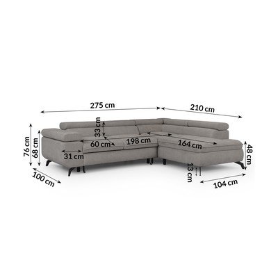 ŽinylkováPolohovací/rozkládací/s úložným prostoremPravý roh/do LSvětle šedáVhodné pro mazlíčky/odolné vůči skvrnámČtyřmístnáŠířka 275 cm