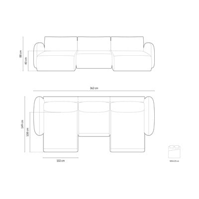 Žinylková, rozkládací/s úložným prostorem, do "U", světle šedá, vícemístná, šířka 362 cm