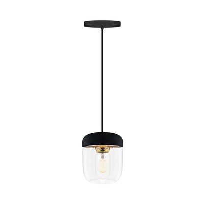 Jednoduchému nápadu dodává patinu kontrastní objímka v barevném kovu. Jednotlivé svítilny lze lineárně nebo kaskádovitě kombinovat podle vašich potřeb. Tato svítidla